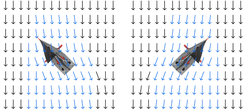 面白いことに、特定の横風角度では、リムが実際に前進する推進力を生み出すことがあります。これは、帆船が風上に向かってジグザグに進むのと似ています。